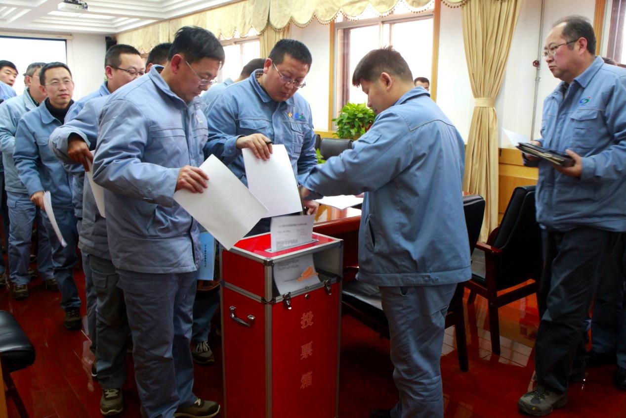 會(huì )后,與會(huì )人員將填寫(xiě)好的基層黨建工作述職評議表投入票箱。