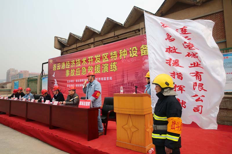 為預防和減少生產(chǎn)安全事故的發(fā)生,檢驗連云港開(kāi)發(fā)區市場(chǎng)監管局應急預案與企業(yè)應急預案的銜接性,提高應對突發(fā)事故的組織領(lǐng)導、協(xié)調配合、快速反應、應急處置能力。同時(shí)檢驗公司應急預案編制的實(shí)用性、可操作性,3月22日,連云港經(jīng)濟技術(shù)開(kāi)發(fā)區市場(chǎng)監管局聯(lián)合堿業(yè)公司組織開(kāi)展特種設備事故應急演練。市質(zhì)監局副局長(cháng)宋志飚、開(kāi)發(fā)區市場(chǎng)監管局局長(cháng)殷元、公司總經(jīng)理、黨委副書(shū)記李清菊等現場(chǎng)觀(guān)摩演練。
