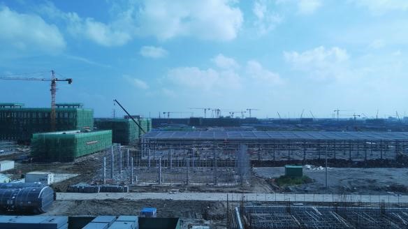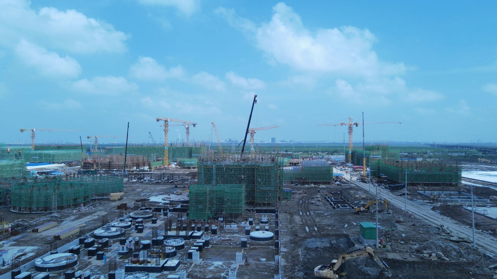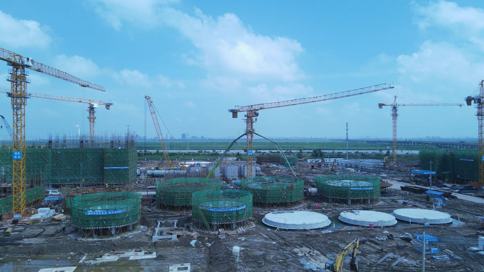 ⑸合成氨二標段271原料煤儲運破碎樓三層底板放線(xiàn),#1轉運站頂層梁板柱澆筑,#2轉運站三層支撐架搭設,鋼筋綁扎、支模,角撐、斜撐、圍檁安裝;820合成氨循環(huán)水站清凈廢水池上部結構,塔下水池墻壁支模;711煤漿制備二層腳手架搭設,鋼筋綁扎,支模,安裝預埋件,初期雨水池池壁鋼筋綁扎,支模,支撐架搭設,套管安裝;762壓縮機廠(chǎng)房上部結構支模;761冷箱基礎冷箱防護墻拆模;膨脹機房上部結構鋼筋綁扎;712氣化框架立柱腳手架搭設,鋼筋綁扎,基礎承臺鋼筋綁扎,支模,防腐;灌注樁施工;842空分機柜間鋼筋綁扎;713渣水處理集渣池鋼筋清理,設備基礎預埋螺栓安裝。