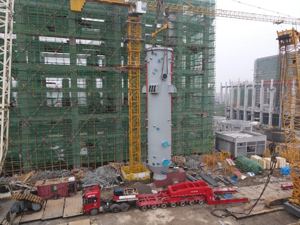 本次吊裝的汽化爐直徑3.8米,長(cháng)28米,凈重460噸,是公司合成氨片區氣化裝置核心設備。采用北京清創(chuàng )晉華科技有限公司水煤漿水冷壁廢鍋氣化爐(晉華爐3.0)技術(shù),三臺晉華爐3.0(兩開(kāi)一備),氣化壓力6.5MPa,總氣量為11000Nm3/h(CO+H2),利用煙煤進(jìn)行氣化。