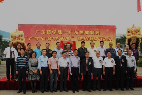 2012年11月15日,在市、區(qū)各級領(lǐng)導(dǎo)、嘉賓見證下,我公司舉辦了與廣東藥學(xué)院共建“產(chǎn)學(xué)研合作基地”的簽約掛牌儀式。