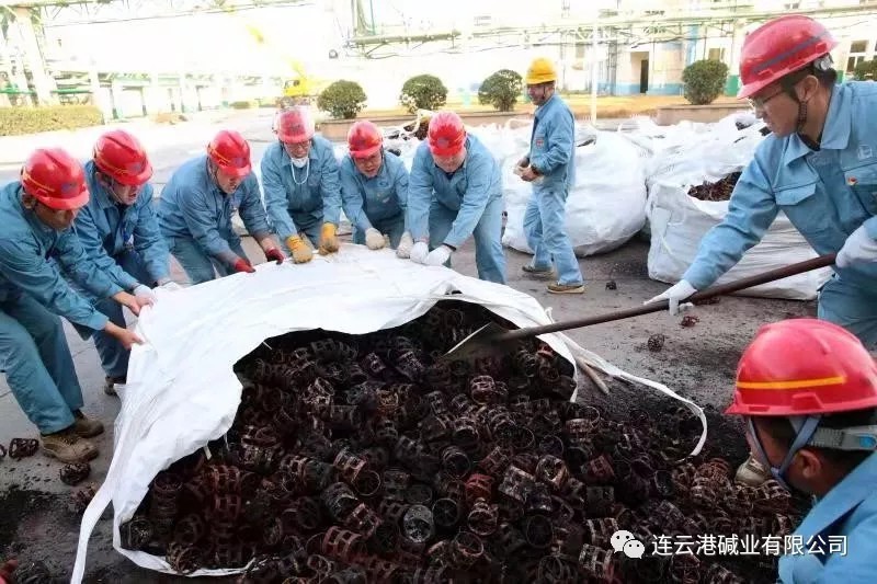 11月7日,重堿車(chē)間1#蒸餾塔計劃檢修,在檢查過(guò)程中發(fā)現鮑爾環(huán)被堿渣堵塞嚴重,影響正常輪換。11月12日,車(chē)間將塔內舊填料扒出,足足有75立方??紤]到這些填料清理干凈后還有利用價(jià)值,車(chē)間牢固樹(shù)立“過(guò)緊日子”的思想,打算自行組織職工清理。