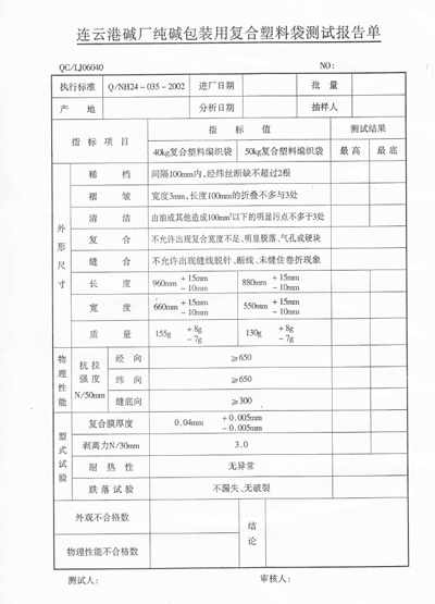 5.6 其他主要資格要求:具有合法有效的生產(chǎn)許可資質(zhì),企業(yè)制度完善、質(zhì)量管理規范,具有完整的拉絲、織布、縫紉、檢測等生產(chǎn)線(xiàn),注冊資金不少于500萬(wàn)元(人民幣)。食品包裝袋投標人應具備食用包裝物生產(chǎn)許可資質(zhì),并提供第三方檢測報告。投標人必須送樣品袋先經(jīng)我公司質(zhì)檢部門(mén)檢測合格(2018年10月20日之前送到連云港堿業(yè)有限公司供應部,原招標人供應商不需送樣品袋)。符合法律、法規規定的其他條件。