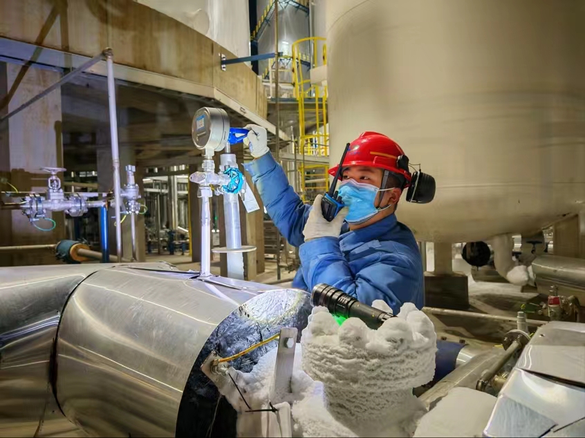 “春節期間,我們一定堅守崗位,保持最佳狀態(tài),確保各項工作有序推進(jìn)。” 空分車(chē)間員工堅定地說(shuō)道。“春節期間更要打起十二分精神,不能有絲毫懈怠。” 他們密切關(guān)注著(zhù)設備的運行參數,仔細記錄著(zhù)每一個(gè)數據。“走,除夕夜檢查不能停,一定要確保萬(wàn)無(wú)一失。”夜色中,他們頂著(zhù)瑟瑟寒風(fēng)認真巡檢,檢查空壓機運行狀態(tài),保障儀表氣穩定供應。為了確保后序工段氮氣吹掃和密封氣供應,空分車(chē)間定時(shí)對真空液氮儲槽進(jìn)行充液,為氮氣供應保駕護航。