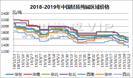 百川資訊及純堿公平貿易工作站:(2019.12.6-12.12)輕質(zhì)純堿出廠(chǎng)價(jià)格走勢圖